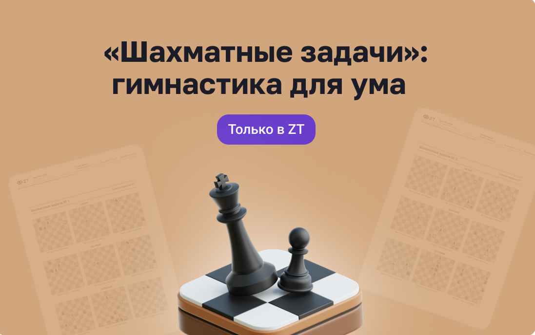 Шахматные задачи от ZT — это готовые наборы для интеллектуального досуга, которые помогут сохранить ясность мышления и стратегический подход к жизни там, где мозг рискует «застояться».